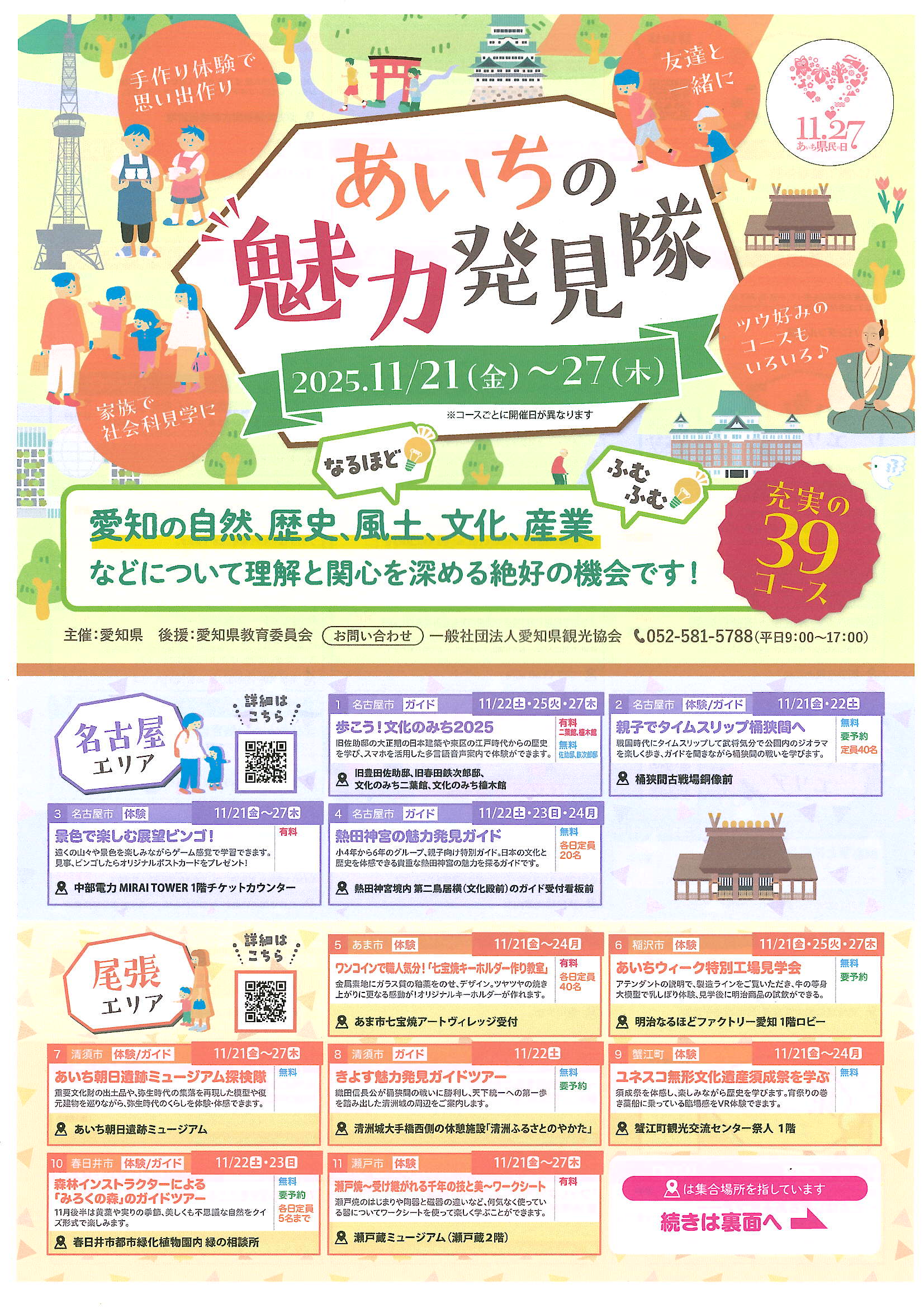 11月21日から27日はあいちウィーク、11月27日はあいち県民の日です。期間中のイベントを紹介いたします。 |
